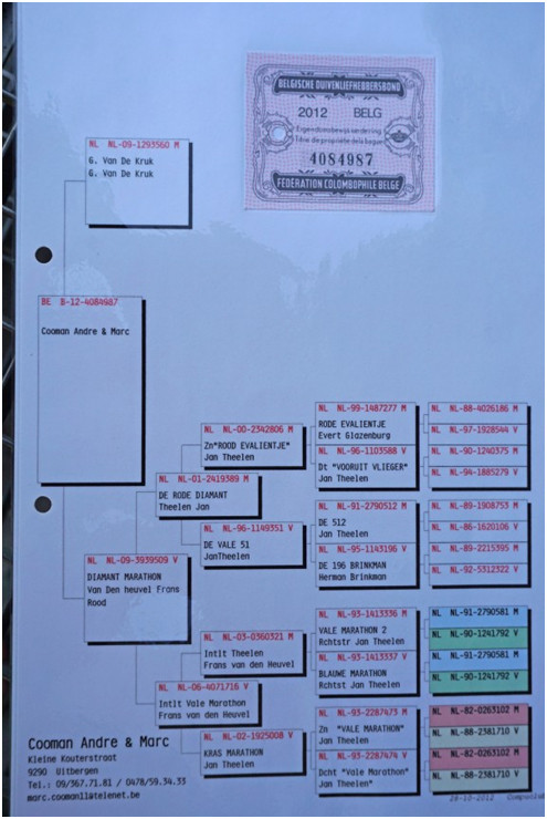 比利時全國7.944羽冠軍鴿B12-4084987紅公 血統書
