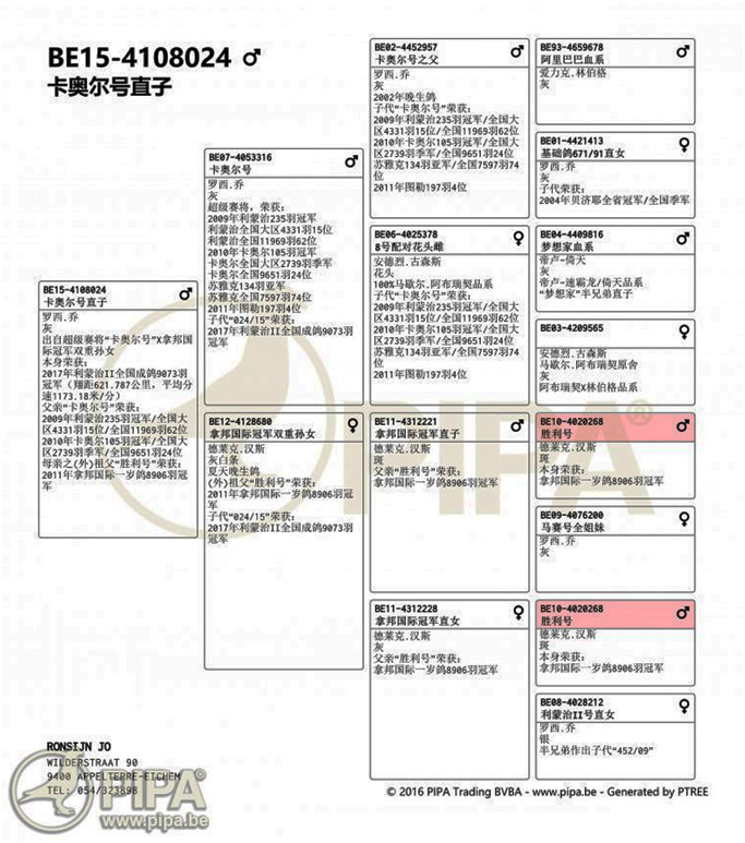 利蒙治II比利時全國一歲鴿組10.565羽冠軍B16-2146311班母 血統書