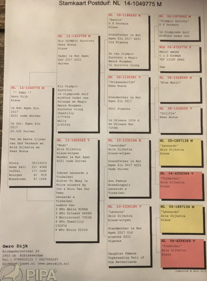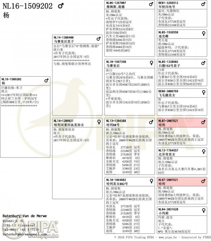 荷蘭全國冠軍(一歲鴿組5.930羽)NL16-1509202班公 中文翻譯血統書