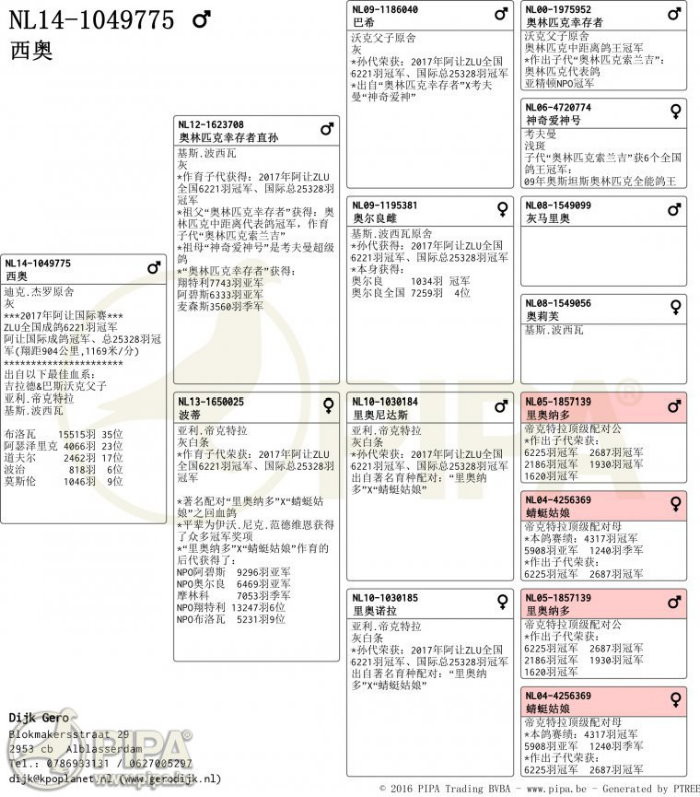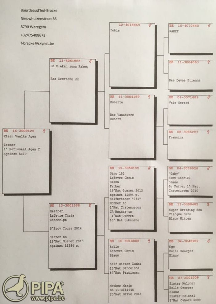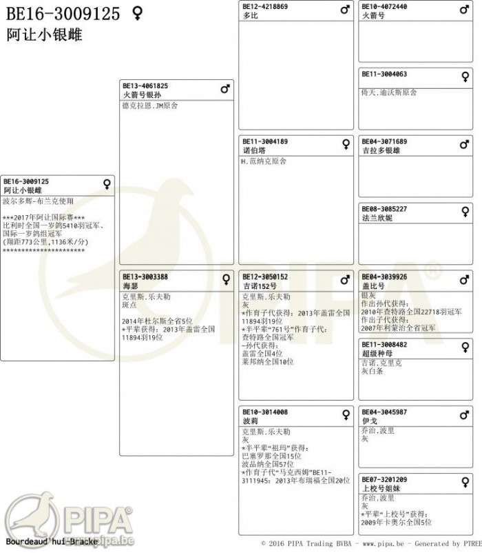 阿讓國際賽比利時(一歲鴿5.404羽)全國冠軍:B16-3009125紅母 中文翻譯血統書