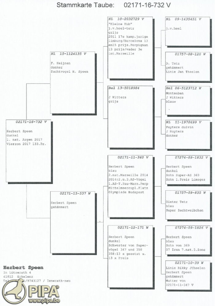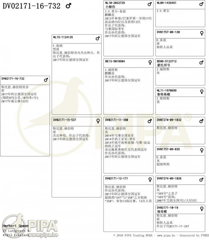 2017年阿讓國際賽德國全國成鴿組冠軍DV02171-16-732班公血統書