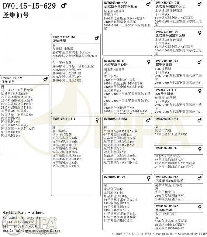 聖維仙德國全國932羽冠軍DV0145-15-0629班公 中文翻譯血統書