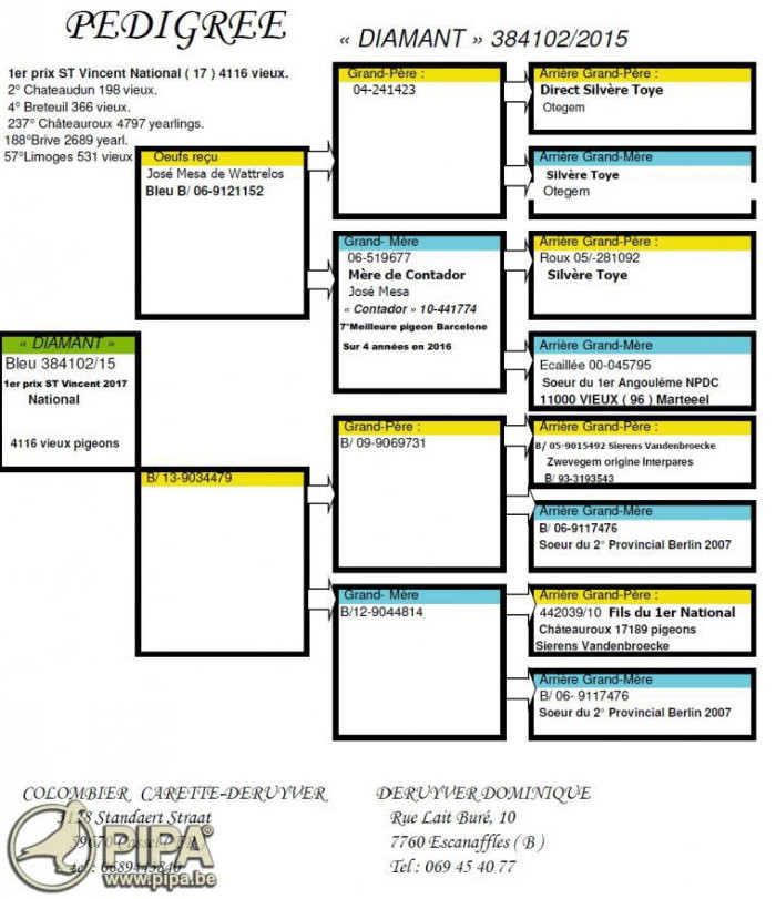 獲得聖維仙國際賽法國4.163羽全國冠軍為卡萊特-德魯耶(Carette-Deruyver)鴿舍,該舍冠軍鴿