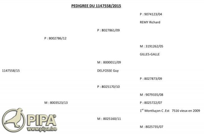獲得馬賽(Marseille)國際賽8.037總冠軍為來查爾.倚天(Charlier Etienne)鴿舍,該舍冠軍鴿B15-1147558灰公是在比利時時間星期五下午17時11分03秒歸巢,翔距780.655公里,創下平均分速1246.95米/分。