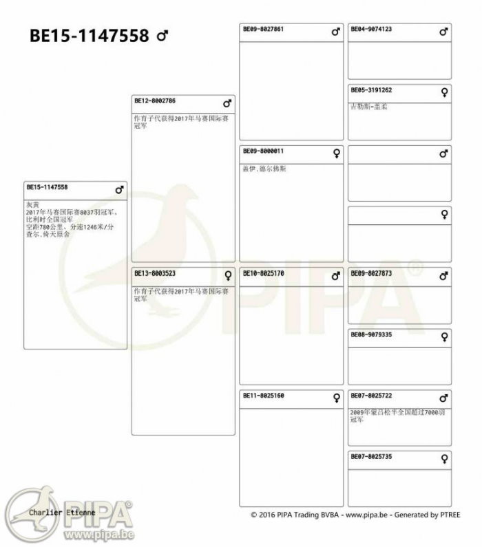 比利時全國3.092羽冠軍B14-3154544灰公 中文翻譯血統書