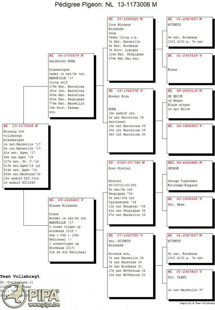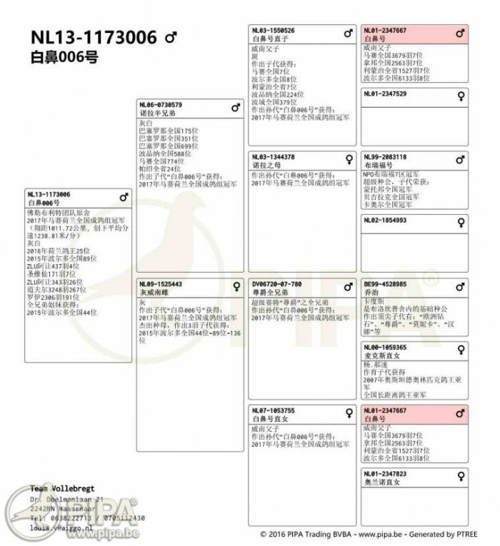 2017年馬賽荷蘭全國2.525羽冠軍鴿NL13-1173006灰白羽 公 中文翻譯血統書