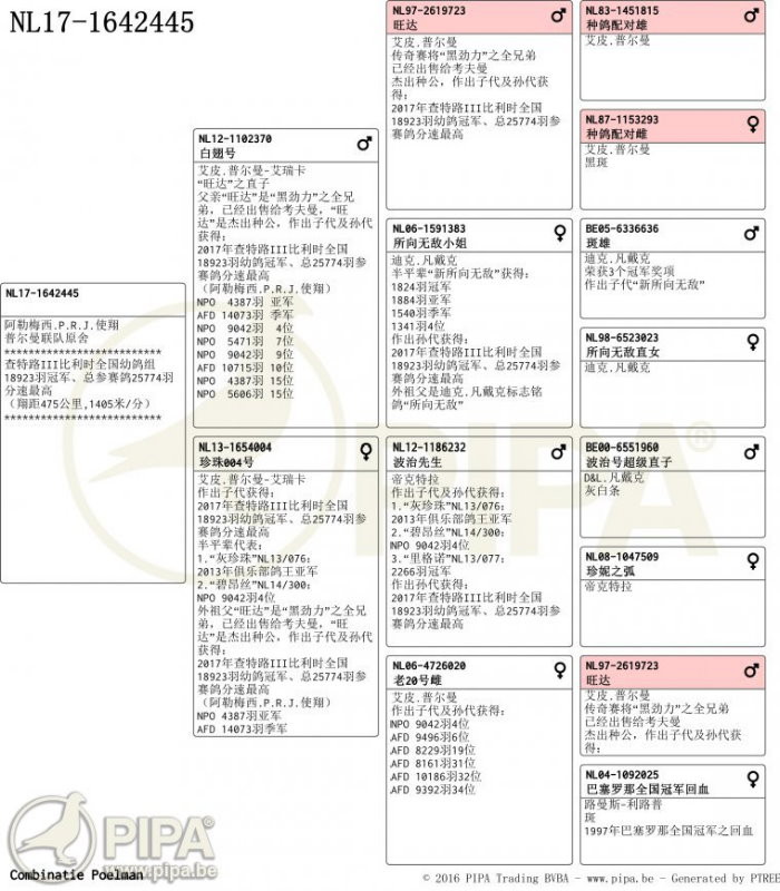 2017年查特路III全國賽成鴿組冠軍中文血統書
