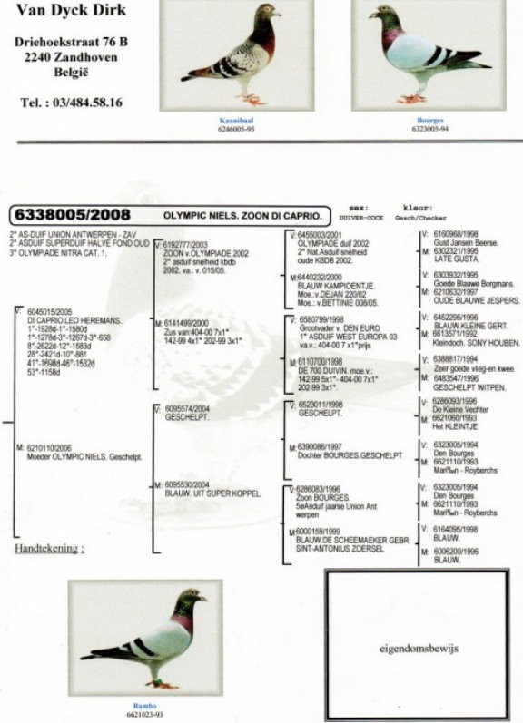我們注意到迪克.凡戴克賽鴿舍現在的冠軍仍然以"所向無敵"血系為基礎,混血了最近的引援,包括裡歐.賀爾曼的"迪卡普里奧"、巴特.吉林克斯的"格鬥士"和"艾希"鴿系,萊昂.雅克布(Leon Jacobs)和楊.胡曼斯等。