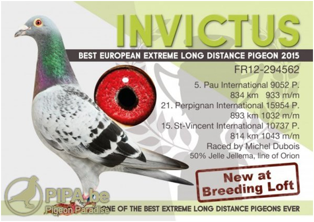這是一羽傑出賽鴿,即便不是最優秀的國際水準超長距離賽鴿,那必定屬於其中之一。這羽頂級賽鴿在PIPA排行榜國際賽2場和3場比賽中都位居冠軍,他在法國北部邁斯尼勒(Maisnil,聖奧梅爾小鎮)的蜜雪兒.杜波依斯鴿舍參賽。