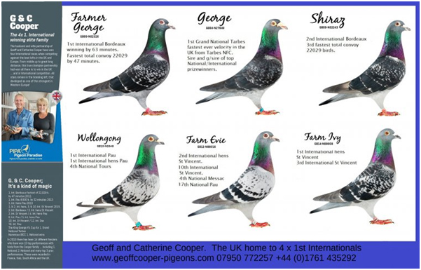 傑夫和凱薩琳.庫伯夫婦在2017年國際賽中取得佳績,波城賽他們的3羽賽鴿是所在地區僅有的當日歸賽鴿,聖維仙和阿讓賽,他們的賽鴿也是唯一當日歸賽鴿,均躋身前名次。