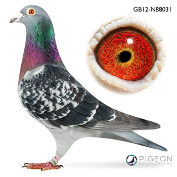 “農夫斯帕瑞”GB12-N88031班公(Farmer Sparey)阿讓賽全國4位,西部地區唯一當日歸巢鴿。