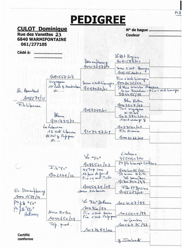 B15-1042274斑公,比利時瓦郎斯國家賽7.687羽(成鴿)全國冠軍血統書