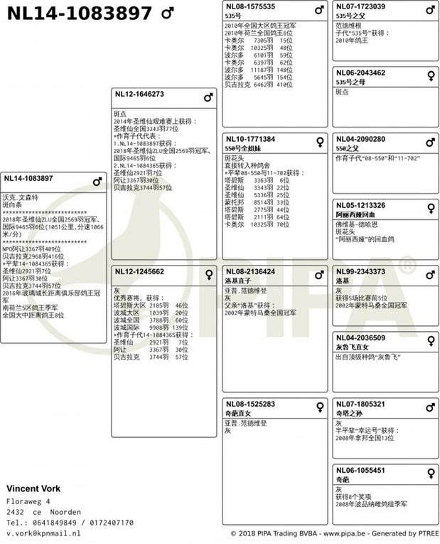 聖維仙國際賽獲得荷蘭全國2.569羽冠軍NL14-1083897斑公 中文翻譯血統書