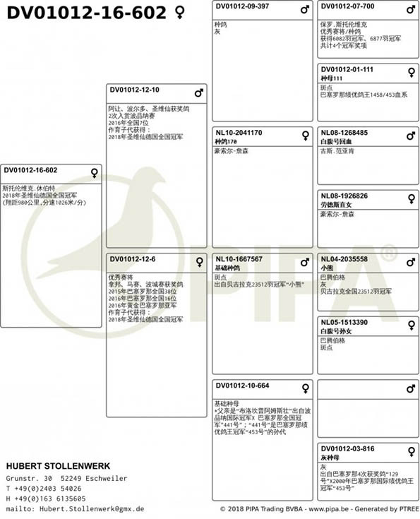 聖維仙國際賽德國全國767羽冠軍DV01012-16-602斑母 中文翻譯血統書