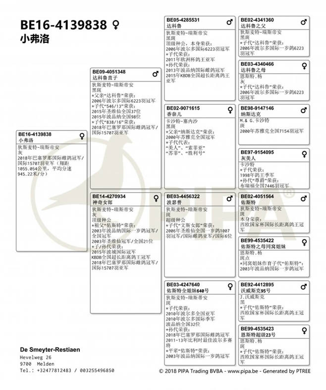 2018年巴賽隆納國際總冠軍鴿B15-4014328斑公 中文翻譯血統書