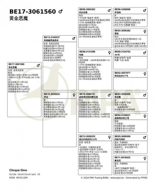 比利時查特盧斯II一歲鴿13.102羽全國冠軍B17-3061560灰公 中文翻譯血統書