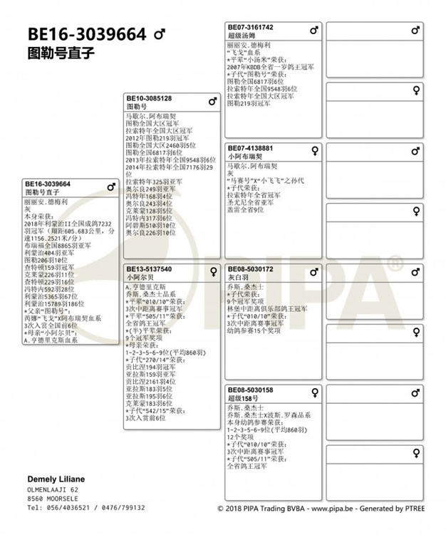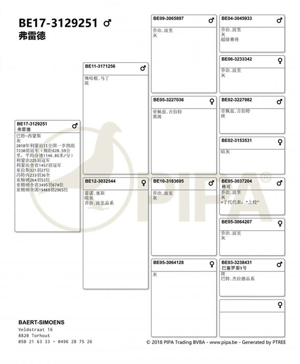 利蒙治 II全國(一歲鴿7.188羽)冠軍B17-3129251灰公 中文翻譯血統書