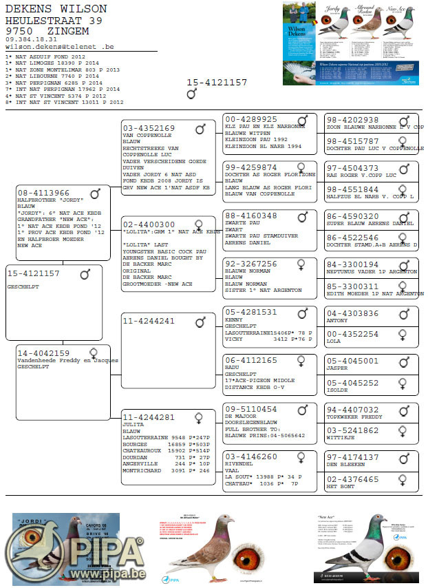 圖勒(Tulle)國家賽總數9.491羽冠軍德肯斯.威爾森(Dekens Wilson)鴿舍