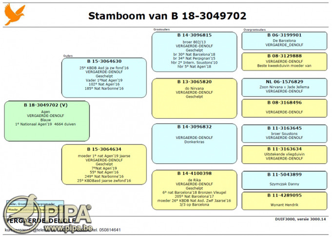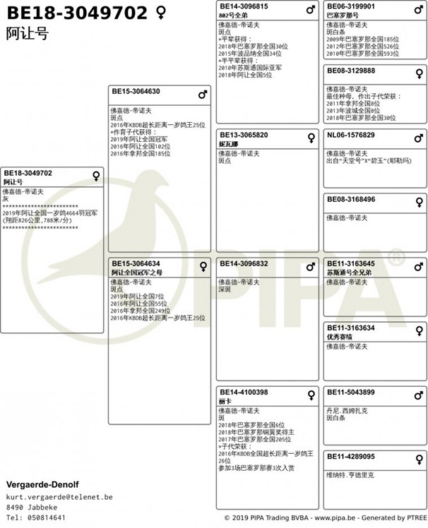 2019年阿讓國際賽比利時全國"一歲鴿組"冠軍B18-3049702灰母 血統書