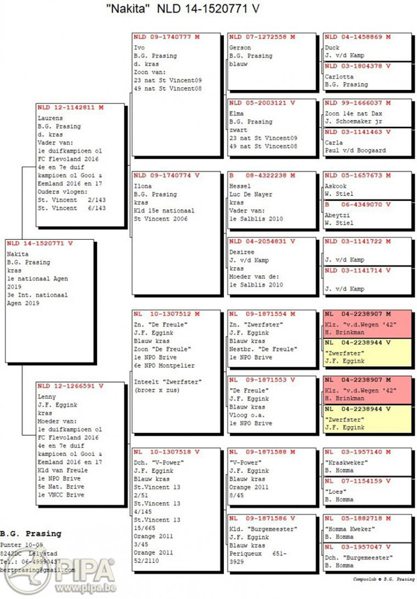 2019年阿讓國際賽荷蘭全國"成鴿組"冠軍NL14-1520771斑母 血統書