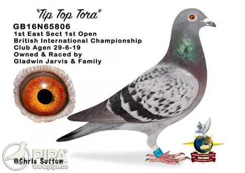 阿讓英格蘭全國冠軍(BICC)"成鴿組"冠軍為格拉文&賈維斯(Gladwin & Jarvis)鴿舍,該舍冠軍鴿GB16-N65806斑公是在比利時時間6月30日(星期日)早上7時35分6秒歸巢,翔距855.322公里,創下平均分速758.87 米/分。