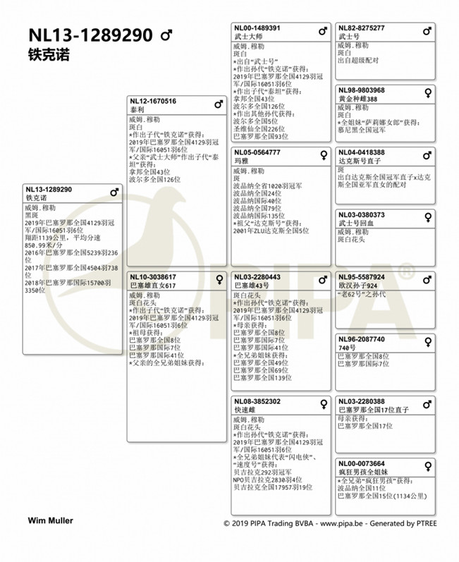 荷蘭全國冠軍(國際16.051羽6位)NL13-1289290斑公 中文翻譯血統書
