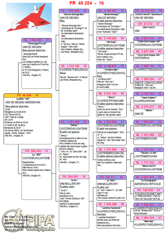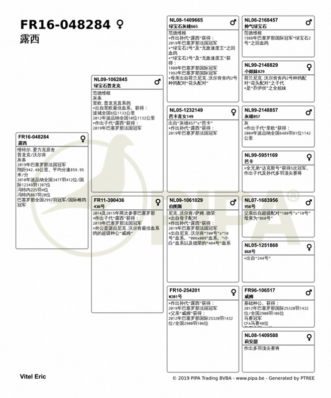 2019年巴塞隆納國際賽法國全國冠軍為FR16-048284灰白羽.母 中文翻譯血統書