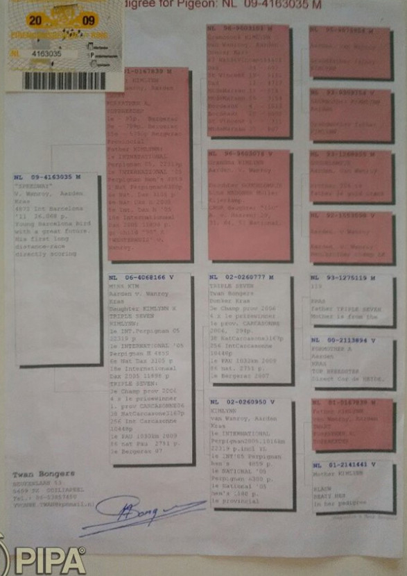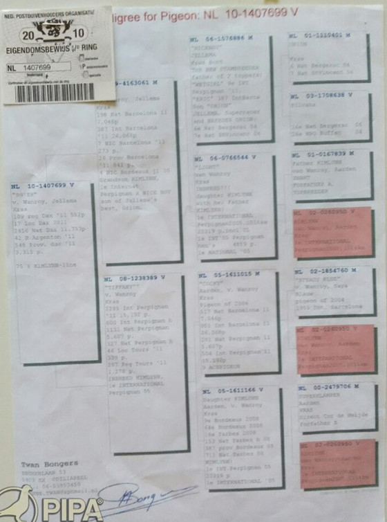 拿邦德國全國"一歲鴿組"冠軍DV07754-18-112斑母 血統書