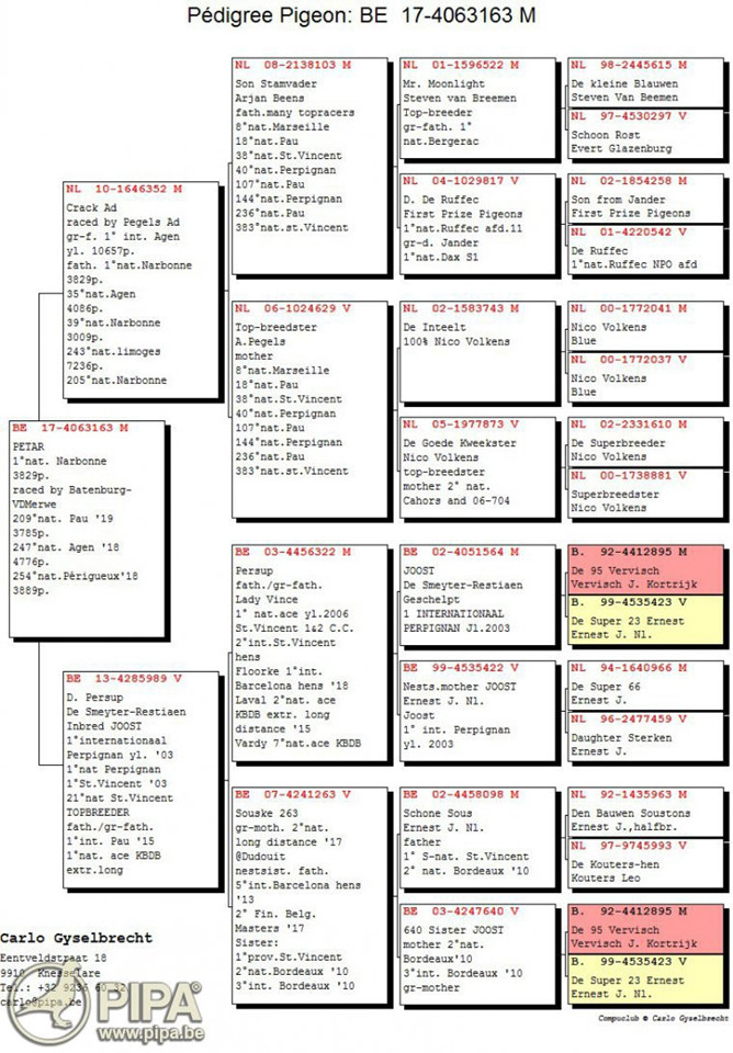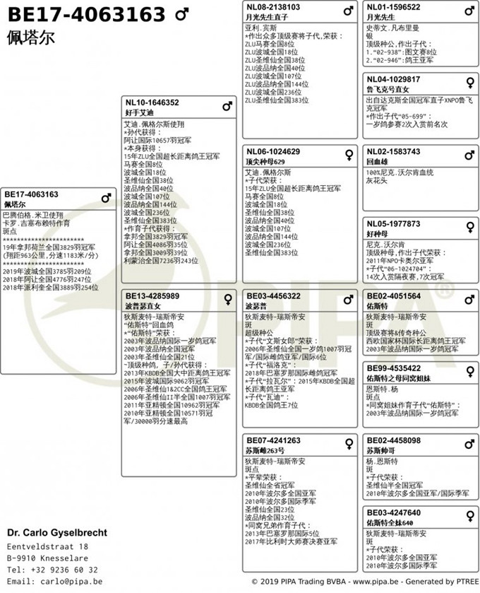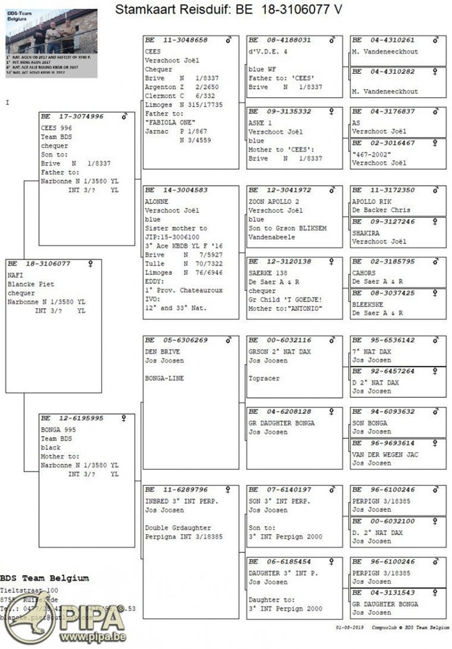 2019年拿邦國際賽荷蘭"成鴿組"3.829羽全國冠軍B17-4063163斑公 血統書