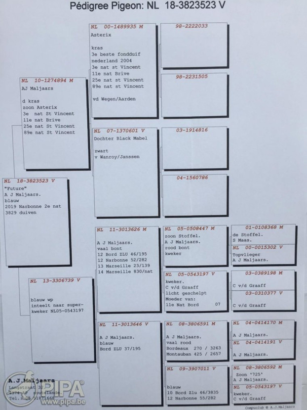 拿邦荷蘭全國"一歲鴿組"冠軍NL18-3823523灰母 血統書