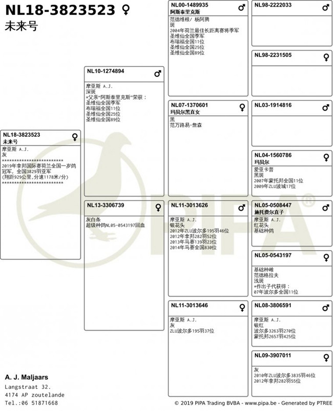 拿邦荷蘭全國"一歲鴿組"冠軍NL18-3823523灰母 中文翻譯血統書