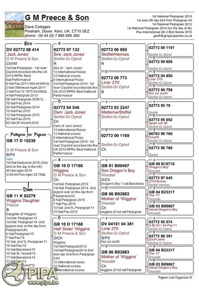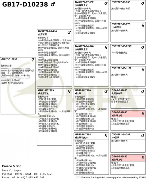 拿邦英國全國"成鴿組"冠軍GB17-D10238灰母 血統書