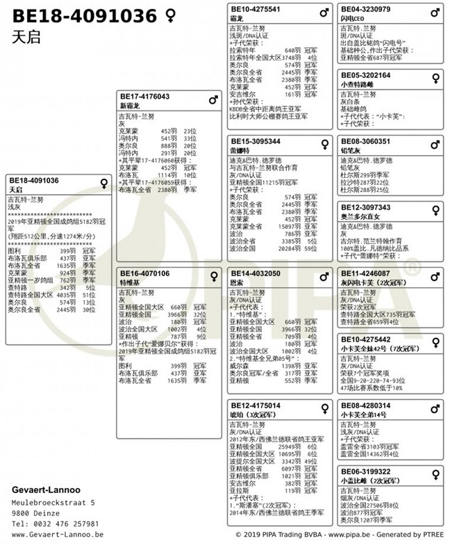 比利時亞精頓 II全國"成鴿組5.182羽"冠軍B18-4091036灰母 中文翻譯血統書