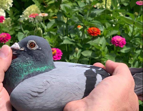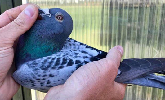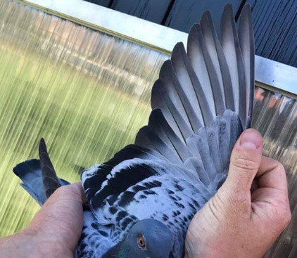 🉐 2019年生109號,髒灰 砂眼母,空距499.844公里,分速1187.15。於安特衛普強省打敗亞軍 尤特豪芬和一眾高手,全國45864羽前10名裡空距最長。