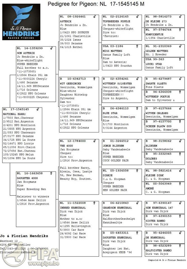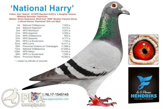 哈利國家號NL17-1545145145灰公:獲查特路國家賽7.503羽冠軍,亞精敦國家賽9.512羽亞軍。