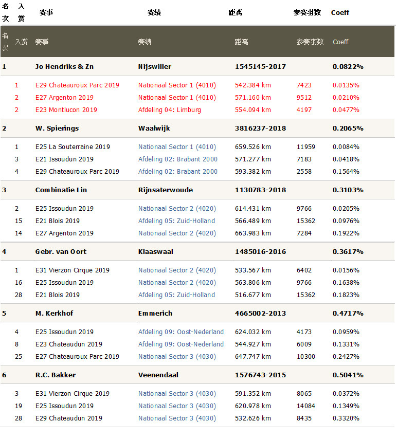 2019年荷蘭最佳長距離賽鴿王----3場比賽