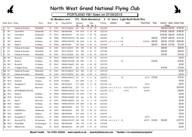 頂級鴿友約翰.克裡翰和胡曼斯相交多年。他們一起在英國參賽,一起享受成功的喜悅。2019年初他們的合作有了新的名字:胡曼斯英國戰隊。現在約翰擁有以楊.胡曼斯為基礎的賽鴿戰隊,每賽季都會有一些“哈利”血系鴿被從荷蘭胡曼斯鴿舍帶過來。從他們近年來的成績來看,這樣的合作確實非常成功。今年他們便取得了24項冠軍。本賽季他們開局良好,在聯盟地區賽連續3周獲得冠軍,下面開局成績單: