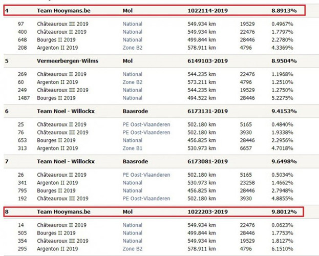 這是瑞高瑞帶領的胡曼斯參加的首個幼鴿賽績,成績非常優秀。他獲得2項PIPA排行榜最佳幼鴿前10位(4場比賽),此外他還獲得KBDB全國中長距離幼鴿組最佳鴿舍4位,KBDB安特衛普省大中距離幼鴿組最佳鴿舍冠軍、鴿王亞軍。這都是非常了不起的成績。.