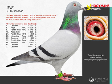 “伊娃” (Eva NL18-5002140), 2019年WHZB/THOTB全國中距離鴿王冠軍