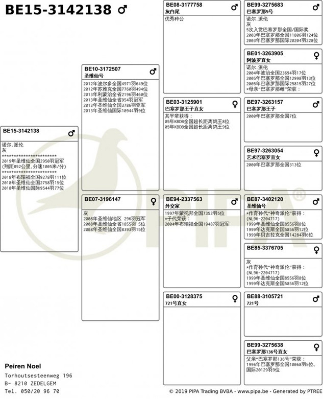 諾爾.佩倫 (Peiren Noel )鴿舍B15-3142138灰公血源: