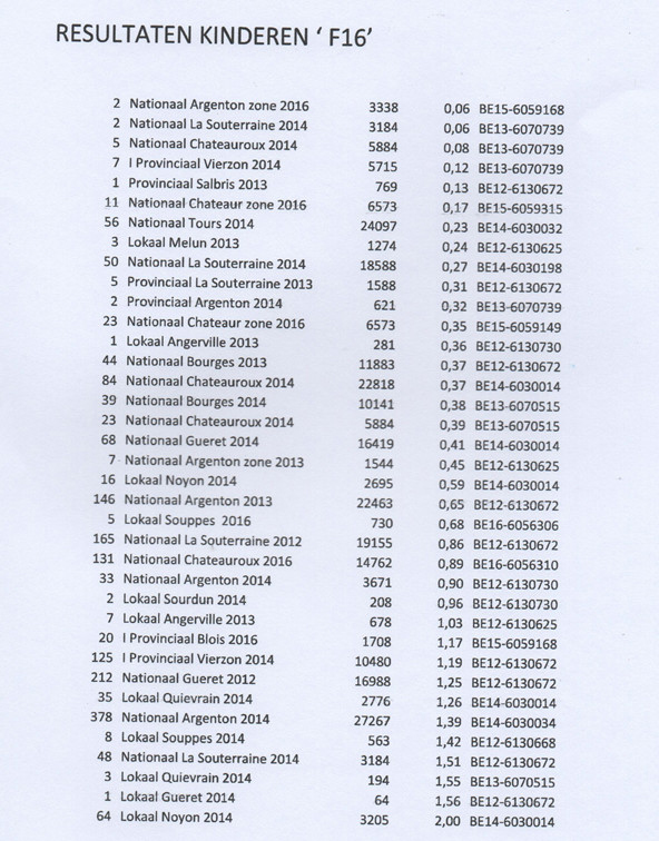 “F16”的子代成績單 (僅記錄進入前2%的名次)