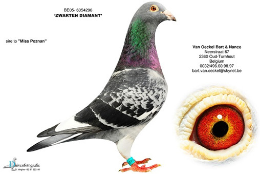 “鴿王鑽石”贏得2016年全國幼鴿組鴿王9位,還獲得波治全國28.078羽70位、查特路全國14.762羽79位和亞精頓全國19.592羽19位。父親BE14-6316876出自“F16” X “黃金女郎”(Golden Lady)。這羽賽鴿贏得拉索特年全國4位、布洛瓦全省4位和蒙呂松全省4位、圖勒全省7位。“鴿王鑽石”的母親為“大媽媽”(Big Mama),作育子代獲得PIPA排行榜6場全國賽最佳幼鴿45位。