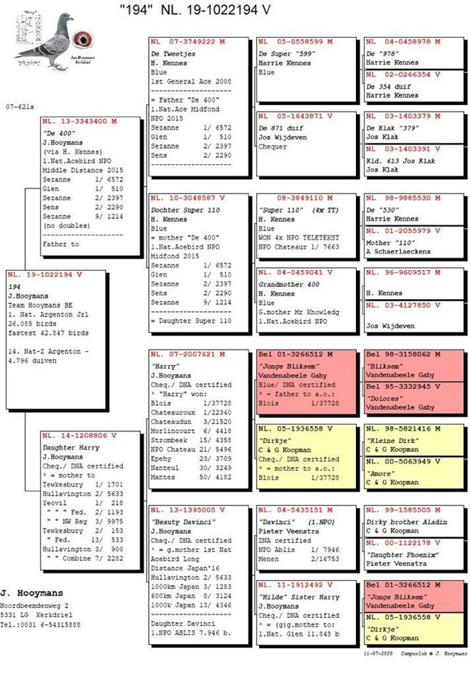 獲得比利時亞精頓 I全國一歲鴿組26.085羽冠軍為楊.胡曼斯團隊(Team Hooymans.be),該舍