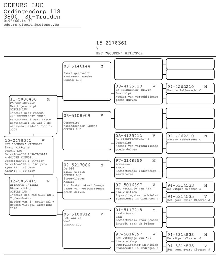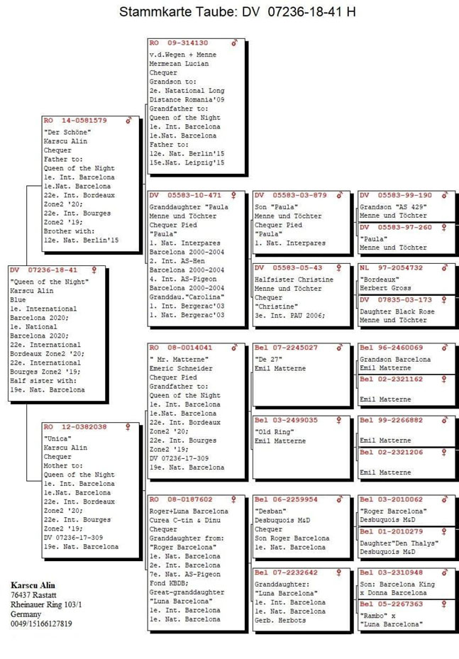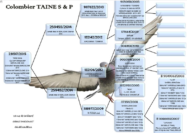 另外這羽雌鴿還在2018年巴塞羅納比利時7438羽918名。2019年獲得巴賽隆納比利時7301羽全國253名。2017年阿讓國際賽12.007羽國際615名!