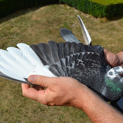 獲得2020年比利時巴賽隆納 (國際賽)成鴿組6.178羽全國冠軍B15-2178361斑白羽.母,是一羽漂亮的雌鴿,有柔軟的羽毛,緊閉的恥骨,漂亮的眼睛,強壯的背部,參加巴賽隆納期間正在育雛第8天。其返舍時間是在(星期六)晚上 20時45分完成打鐘,空中距離為1105.2公里,平均分速為811.74 米/分。
