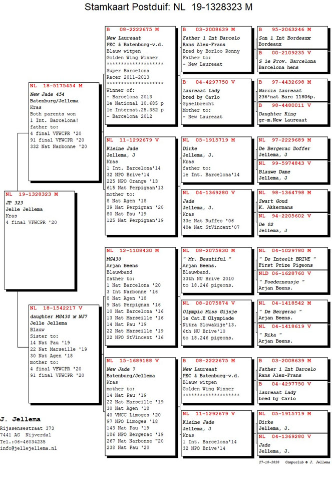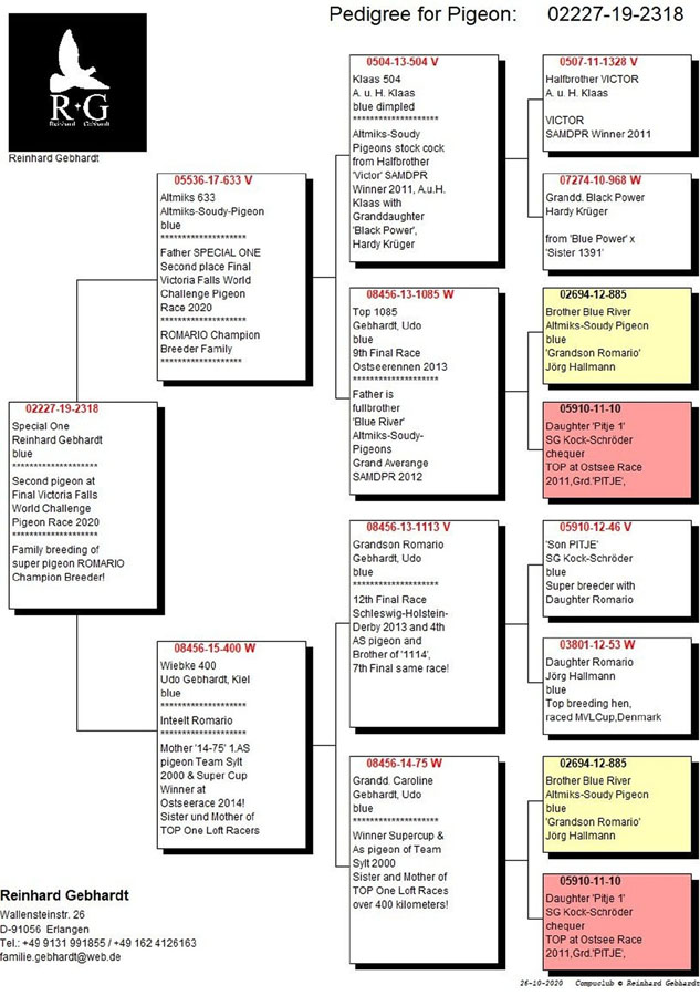 2020年獲勝鴿和鴿王主要來自歐洲,例如傑拉德.考夫曼、耶勒.耶勒瑪、楊.胡曼斯和庫伯夫婦。