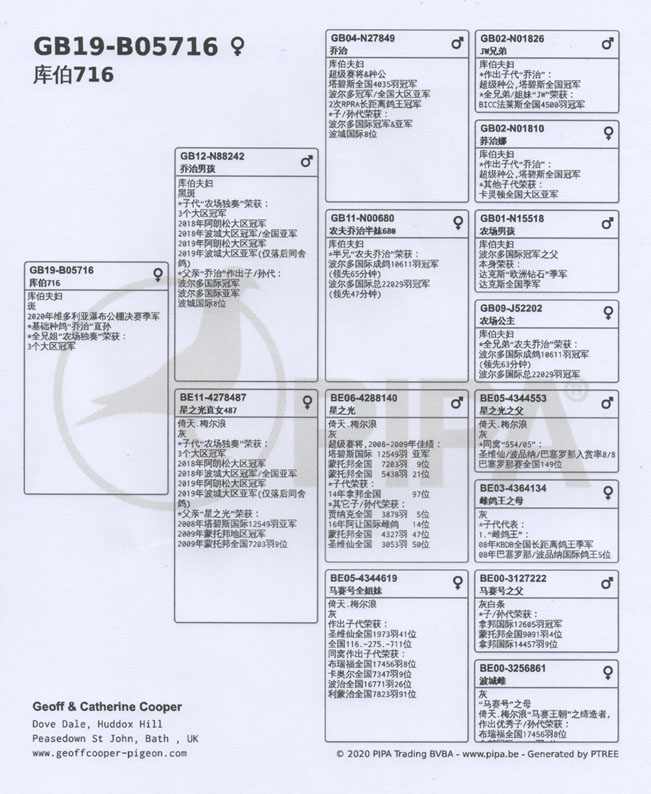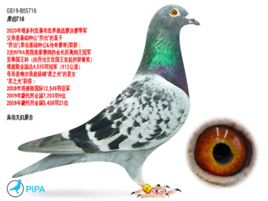 獲得總決賽季軍為英國強豪傑夫.庫伯鴿舍,季軍鴿GB19-B05716斑公。$7萬4.000歐元