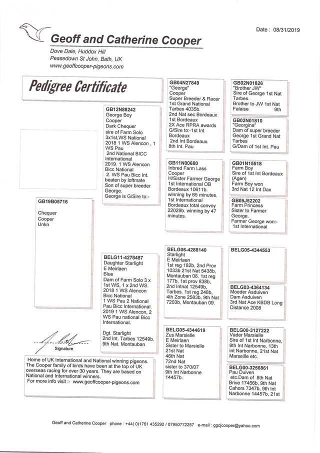 父鴿:GB12-N88242“喬治男孩”,出自“喬治”X“農夫喬治”半妹