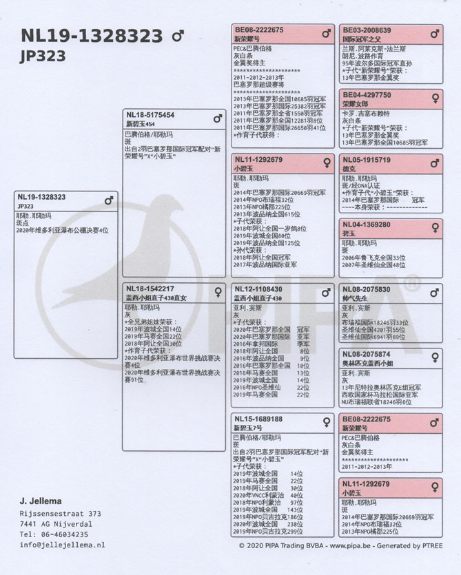 ●母鴿:NL13-1654987 “阿爾齊娜”,考夫曼原舍,出自“神奇人”X“席娜”