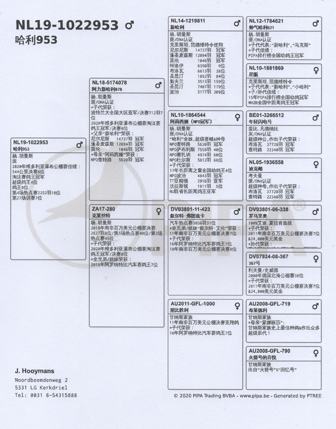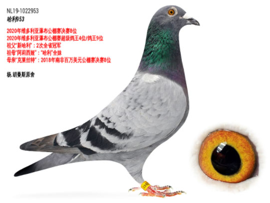2019年“王牌精英”全國一歲鴿王9位(“新哈利”子代)